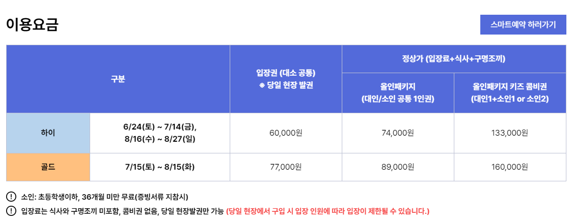 하이시즌 : 6월 24일(토) ~ 7월 14일(금)