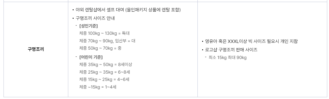 ◈ 올인 패키지 (입장료 + 식사 + 구명조끼)
