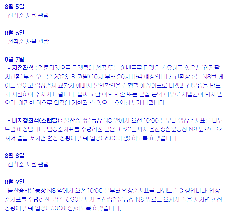 입장팔찌교환 부스 오픈은 2023. 8. 7.(월) 10시부터 20시 마감 예정
