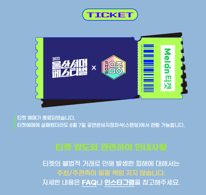 티켓예매에 실패했더라도 8월 7일 공연은 비지정좌석(스탠딩)에서 관람 가능합니다.