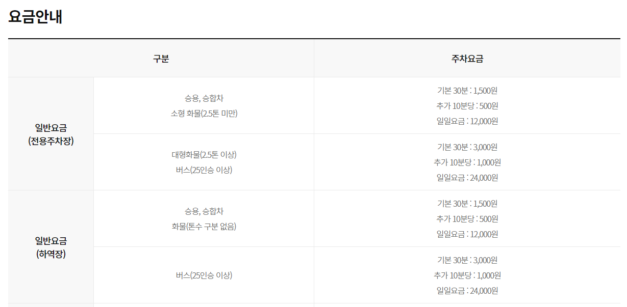 ⊙ 일반요금(전용주차장)