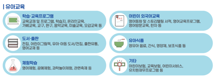 교육교재 및 프로그램, 학습지, 온라인교육, 가베교육, 교구, 완구, 음악교육, 미술교육, 오감교육 등